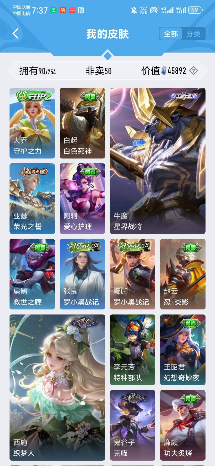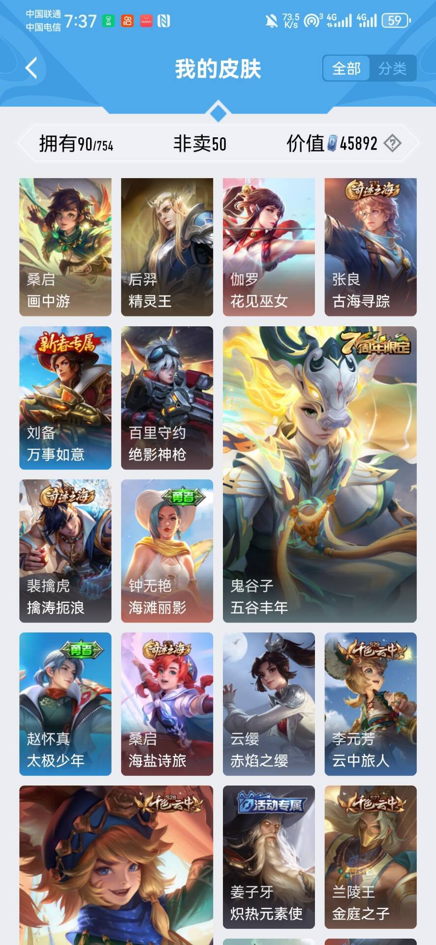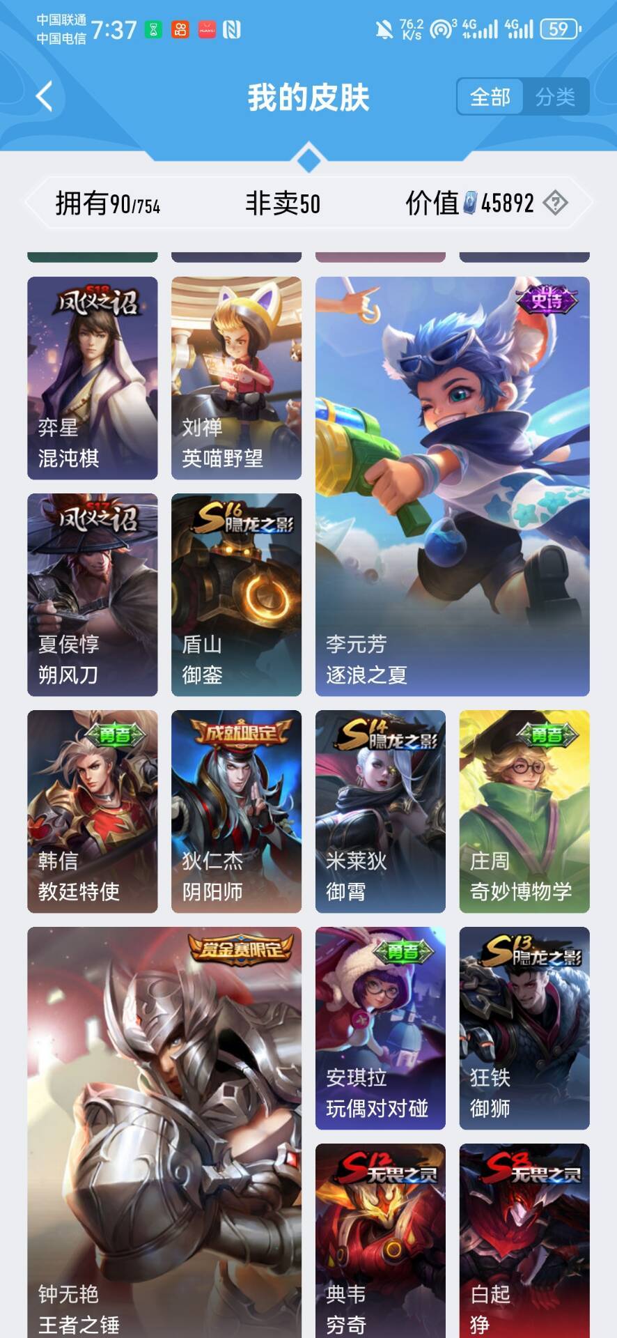回归小号50皮可排位⚡️布丁狗之约⚡️妲己蛇年限定⚡️李白谪仙⚡️五排专属⚡️