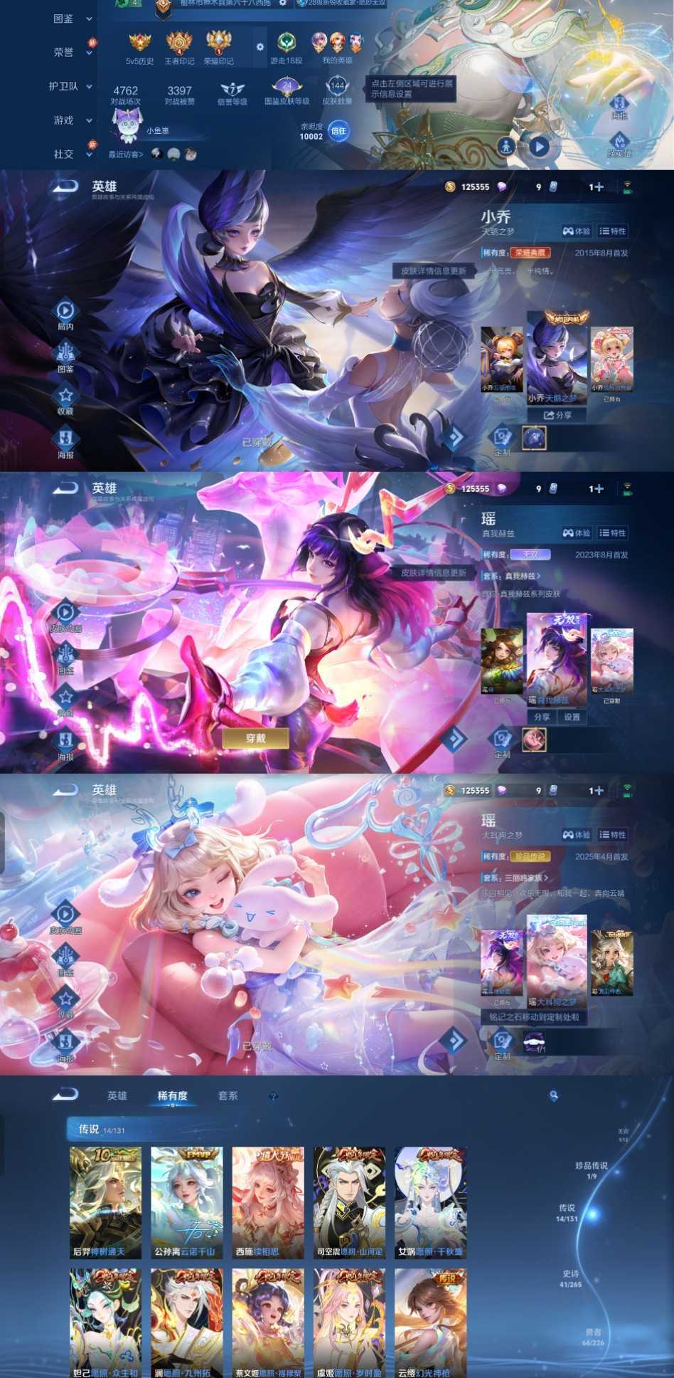 限制: 租号1次及以上 | 撤单率<49%才可租用此帐号装备描述:时间到了还登录白玩或者顶号全部改密拉黑处理永不解除,顶号机器会秒禁玩改密,顶号不仅拉黑还没得玩,赚三两块不容易,请理解谢谢。 ❤❤❤❤❤❤❤❤❤❤❤❤❤❤❤ 请勿开挂,挂机,送头,骂人,撤单后游戏等如有违规永久拉黑永不解除。 重置二级密码不要费劲了,号主每天都会上号查看,多行不义必自毙,人在做天在看,多做好事多自律,少做缺德事。 该号英雄125个皮肤144个,典藏1个,无双1个,珍品传说1个,星传说1个,传说14个,史诗41个,祝你游戏愉快~