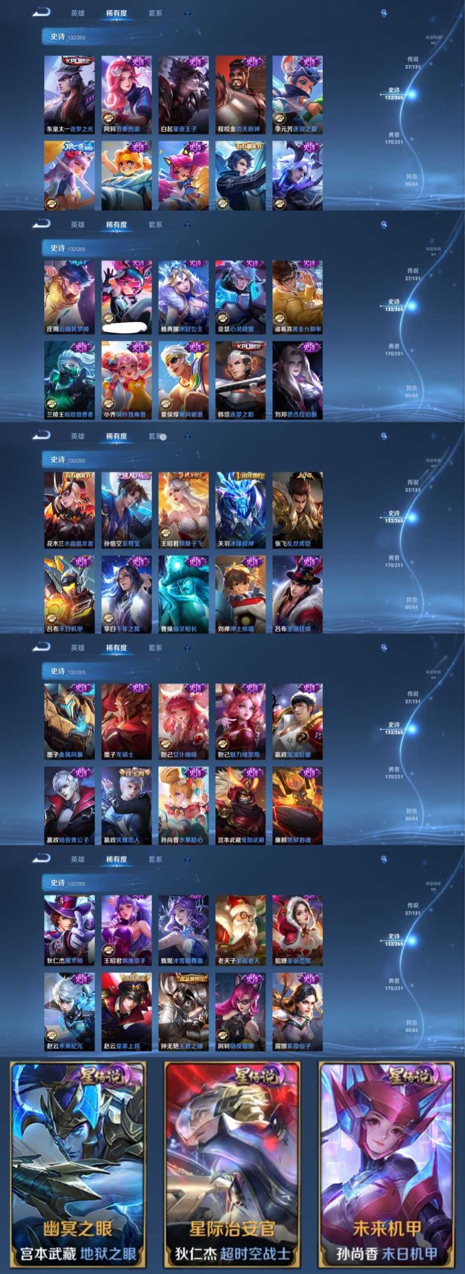 限制: 租号1次及以上 | 撤单率<49%才可租用此帐号装备描述:时间到了还登录白玩或者顶号全部改密拉黑处理永不解除,顶号机器会秒禁玩改密,顶号不仅拉黑还没得玩,赚三两块不容易,请理解谢谢。 ❤❤❤❤❤❤❤❤❤❤❤❤❤❤❤ 请勿开挂,挂机,送头,骂人,撤单后游戏等如有违规永久拉黑永不解除。 重置二级密码不要费劲了,号主每天都会上号查看,多行不义必自毙,人在做天在看,多做好事多自律,少做缺德事。 该号英雄127个皮肤413个,典藏2个,无双2个,星传说3个,传说27个,史诗132个,祝你游戏愉快~
