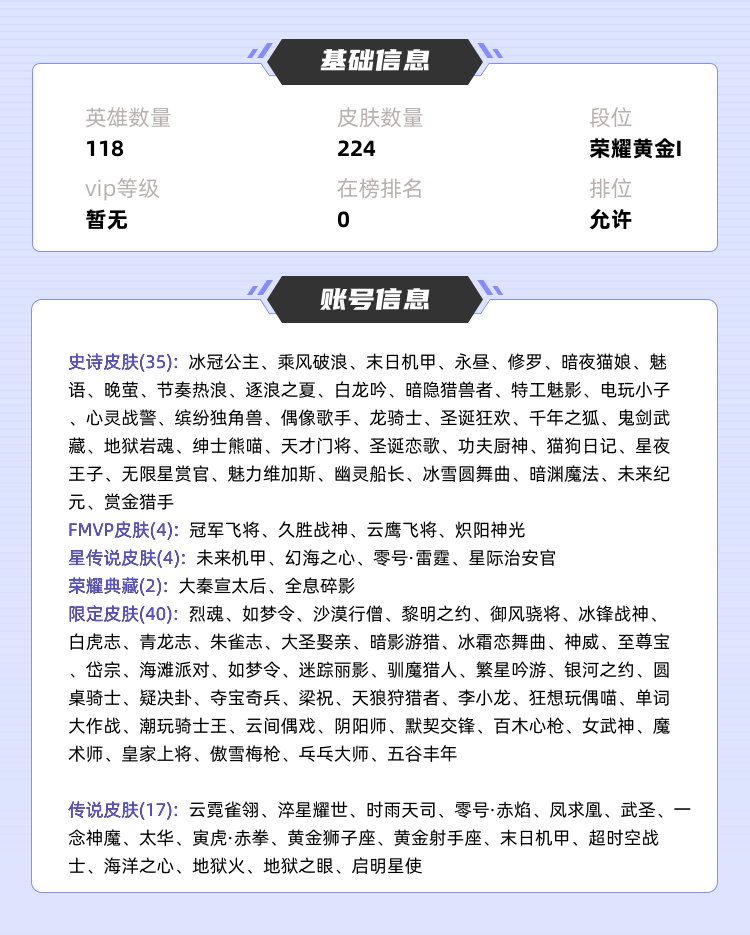 装备描述:|||||||||>喜欢本账号请点 ☆收藏☆ 方便下次租用,谢谢光临惠顾|||||||||禁止利用账号进行开挂、使用辅助违规软件诈骗等违规操作。