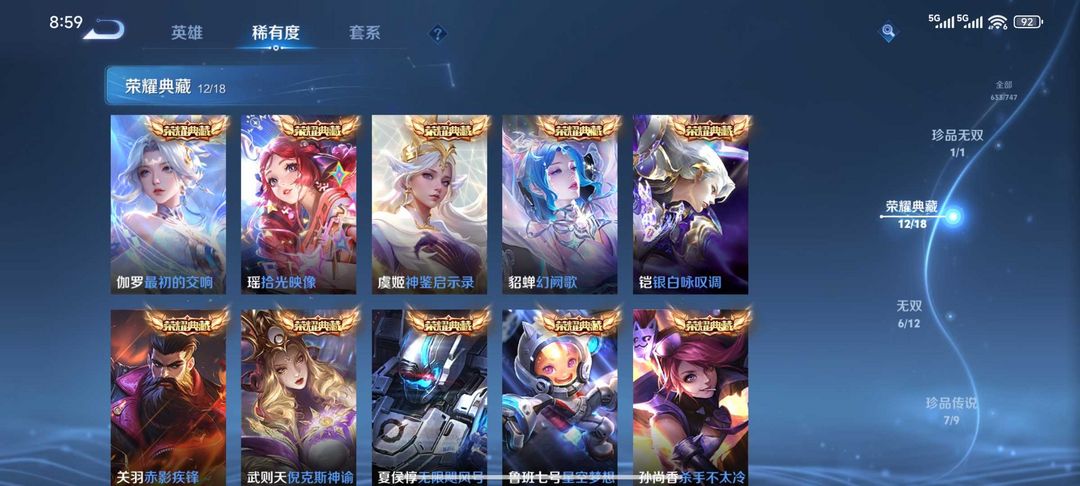十周年皮肤全入貂蝉慕夏 黄鸭小兵皮肤✨100款传说皮肤十三个典藏七珍品六无双八星传说50按键