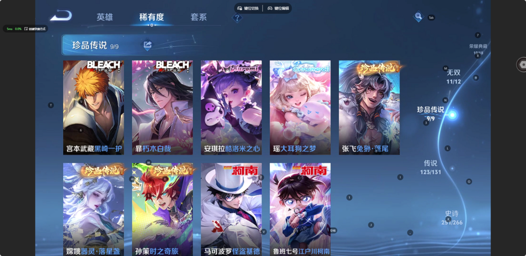 无双V10♥703皮♥10典藏♥11无双♥9珍品♥1珍品无双♥122传说♥馥梦繁花♥幻阙歌♥青丘九尾
