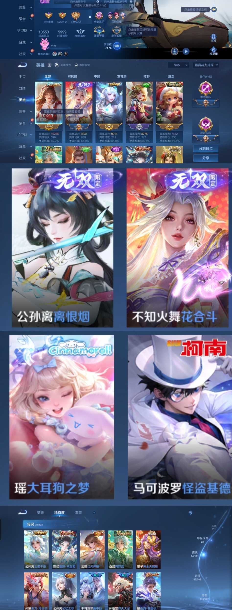 2无双2珍品24传说✨万战王昭君✨大耳狗云诺千山✨众生和怪盗基德✨离恨烟花合斗✨画中仙祈雪灵祝淬吴钩
