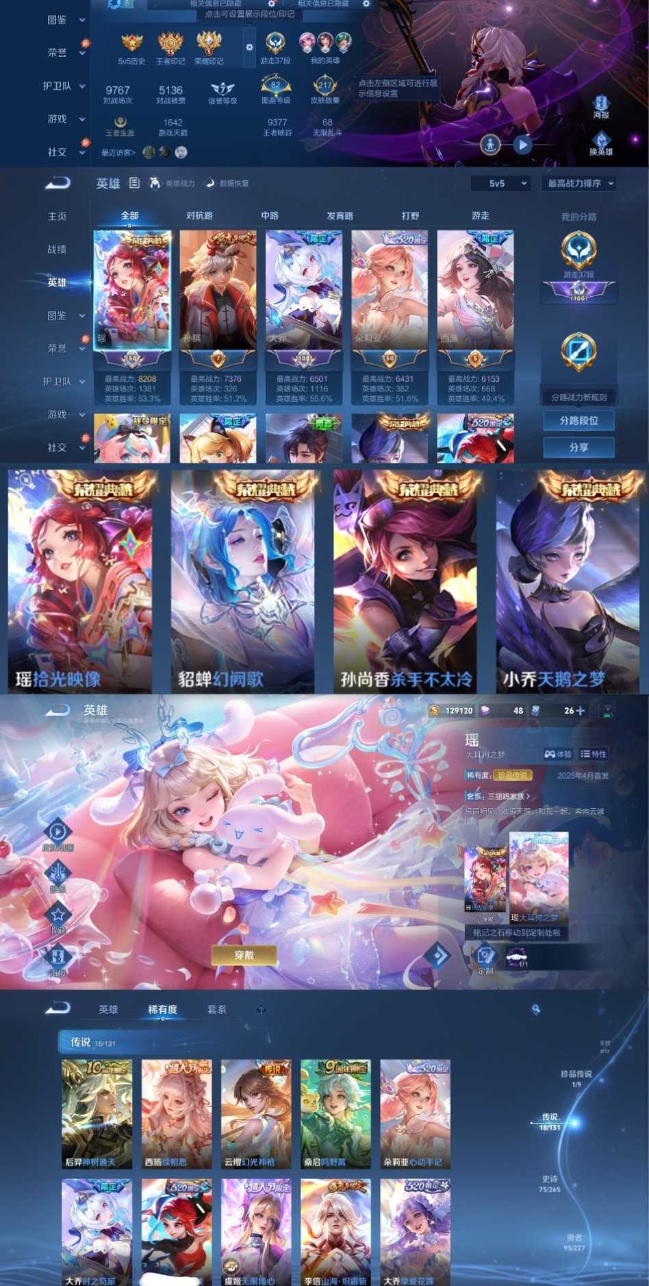 限制: 撤单率<49%才可租用此帐号装备描述:时间到了还登录白玩或者顶号全部改密拉黑处理永不解除,顶号机器会秒禁玩改密,顶号不仅拉黑还没得玩,赚三两块不容易,请理解谢谢。 ❤❤❤❤❤❤❤❤❤❤❤❤❤❤❤ 请勿开挂,挂机,送头,骂人,撤单后游戏等如有违规永久拉黑永不解除。 重置二级密码不要费劲了,号主每天都会上号查看,多行不义必自毙,人在做天在看,多做好事多自律,少做缺德事。 该号英雄126个皮肤217个,典藏4个,珍品传说1个,星传说1个,传说18个,史诗75个,祝你游戏愉快~