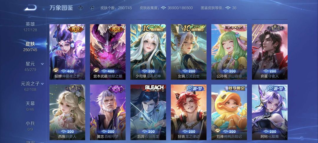 不禁言朽木白哉,时之奇旅,千山共赴,九州拓,问璇玑,地狱之眼➕星元,诡秘之主+250皮肤,欢迎大佬