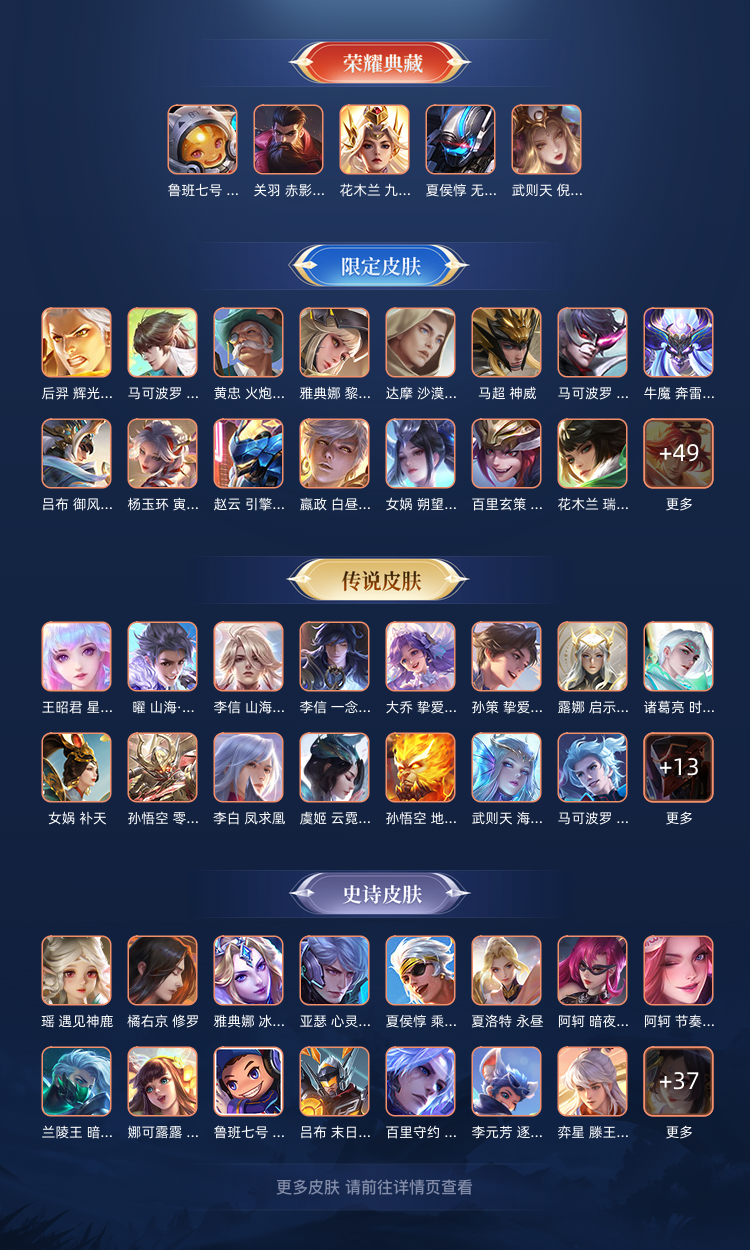 限制: 租号5次及以上 |装备描述:海洋之心,凤求凰,地狱火,街头霸王,霸王别姬,冰粉独角兽,花木兰麒麟志棒球