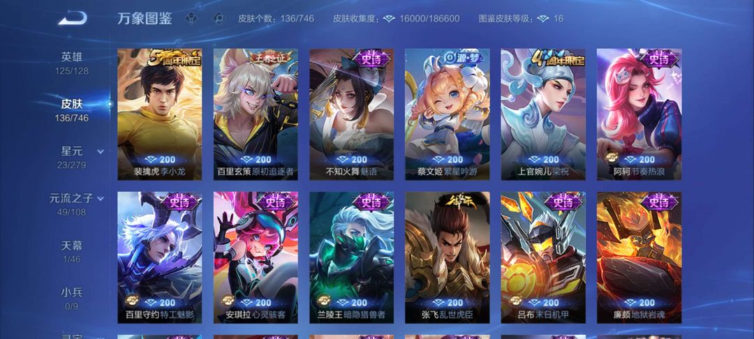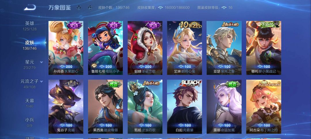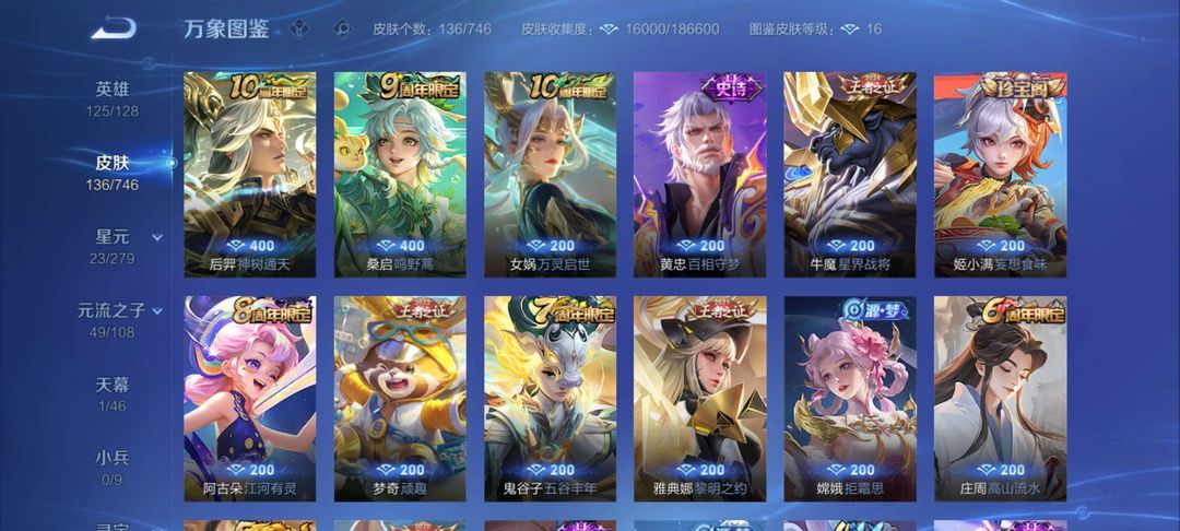 王者普通号 无标 可排位娱乐 稳定不顶号 阴阳师 荣光之誓 优雅恋人等136款皮肤/和125个英雄