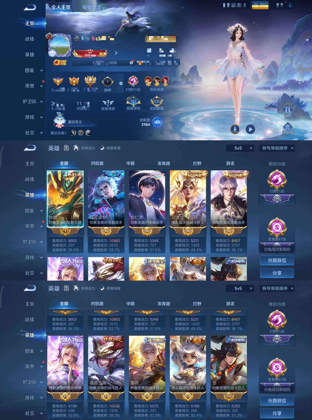 禁言!打野51段!20金标!V10!535皮肤13水2无双86传说!弑枪猎影幻阙歌九尾白虎志李逍遥