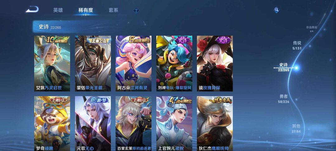 镜的传说镜的史诗干将传说梦奇传说。还有稀有皮肤