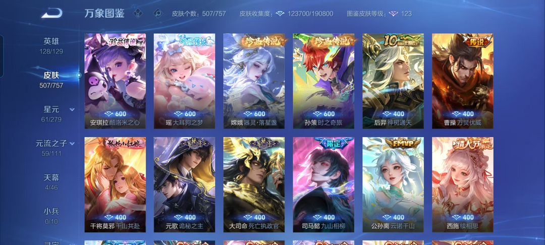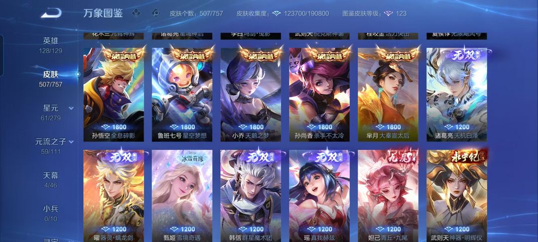 不禁言贵族10❤503皮18典藏7无双4珍品传说79传说满蛇年限定共享皮肤