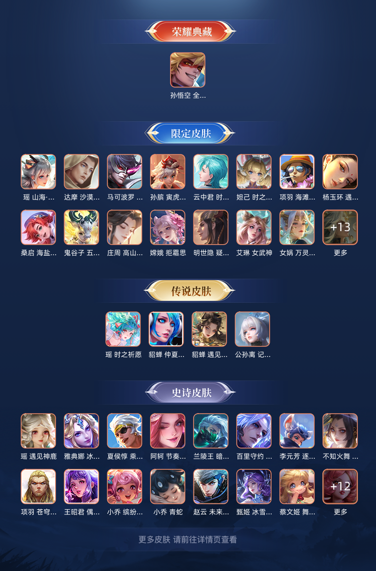 氪了大几千,一堆好皮肤带按键,小乔无双,孙悟空典藏