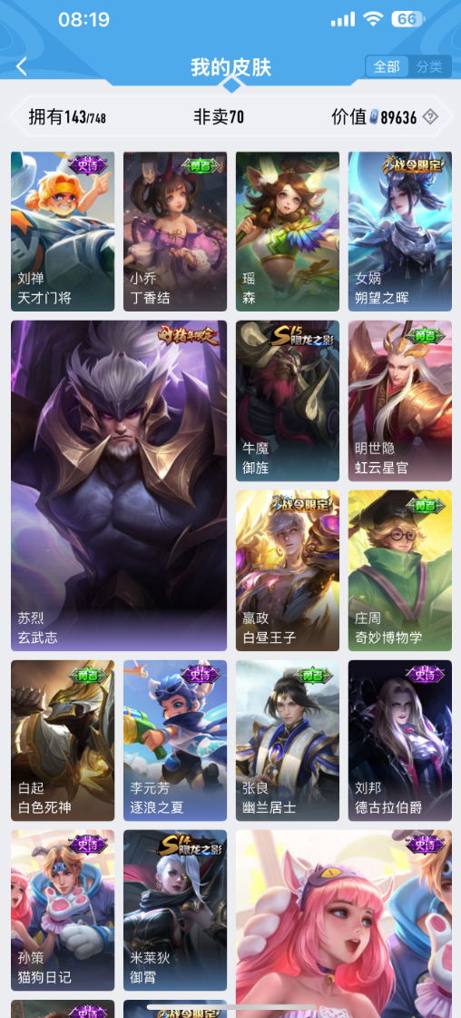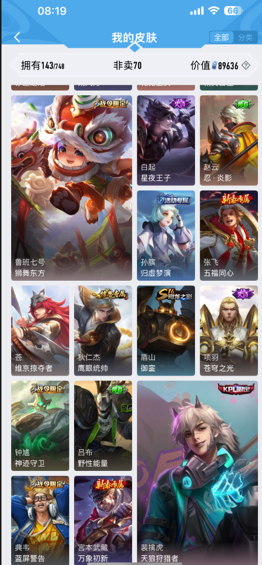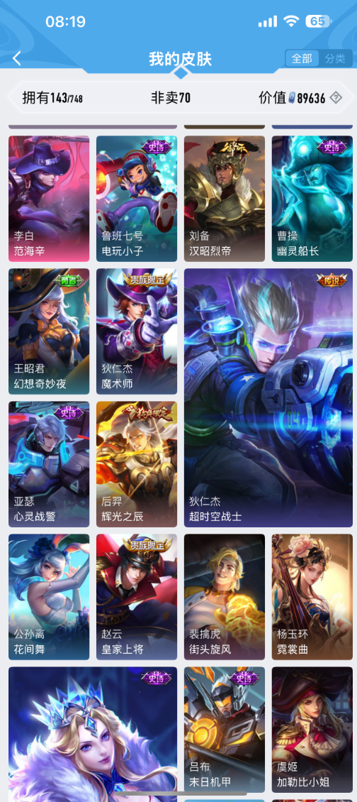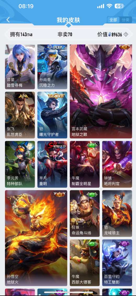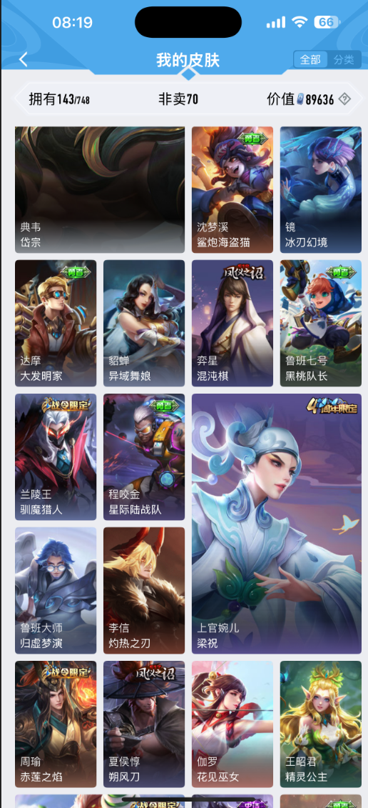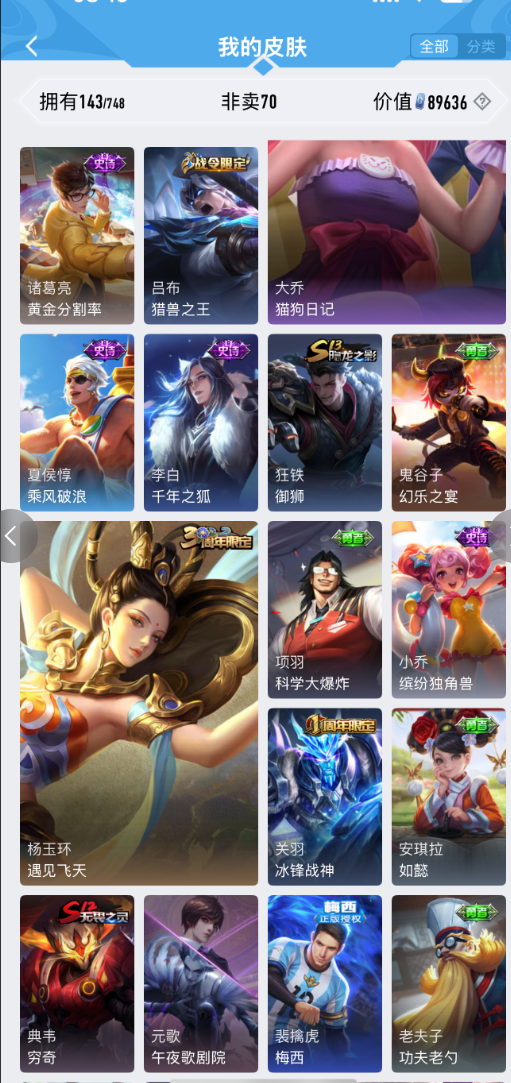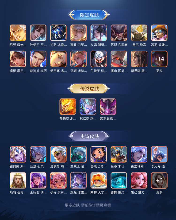 V7!143皮肤4传说!时之恋人-至尊宝-地狱火-霸王别姬-冰封战神-梅西
