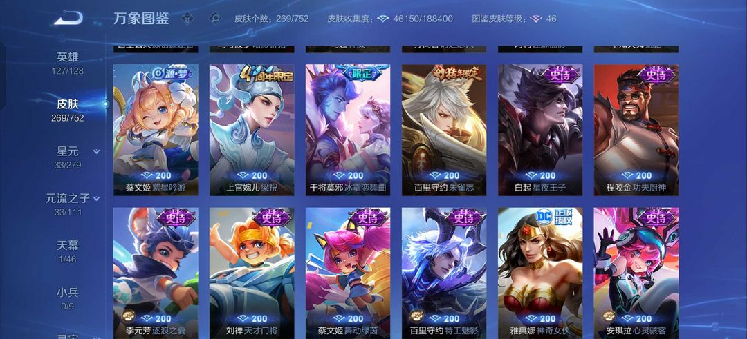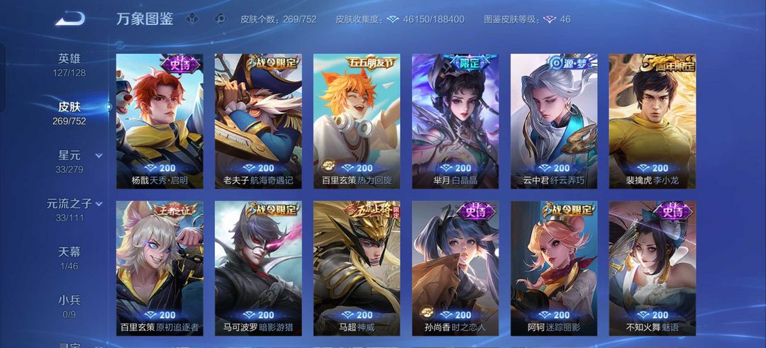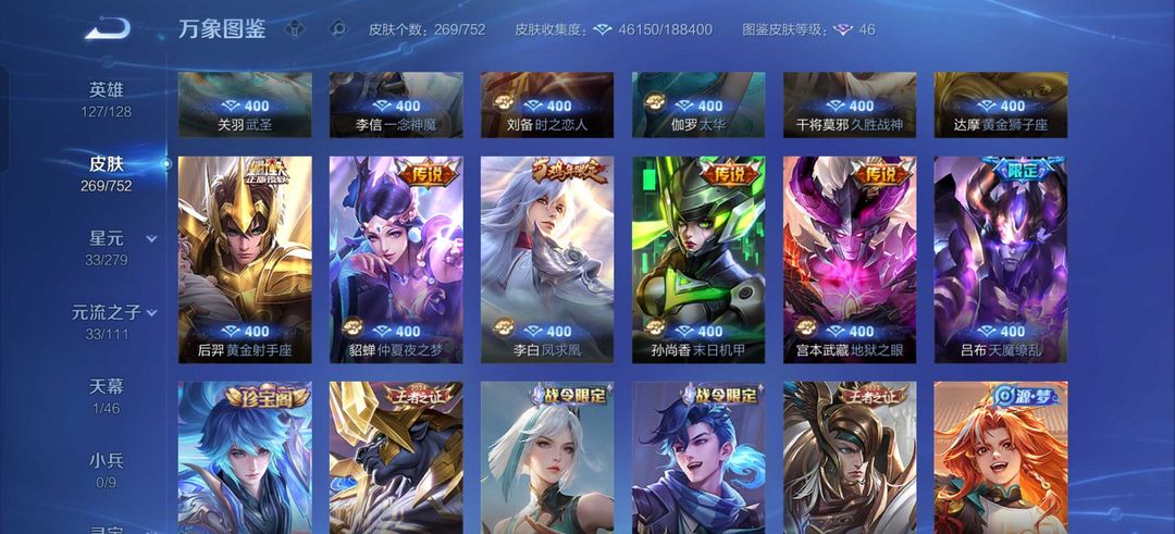 韩信李白无双典藏✨九霄神辉✨碎月剑心✨落雪白狼✨浮生妄✨李逍遥✨补天✨武圣,寅虎赤拳新皮多