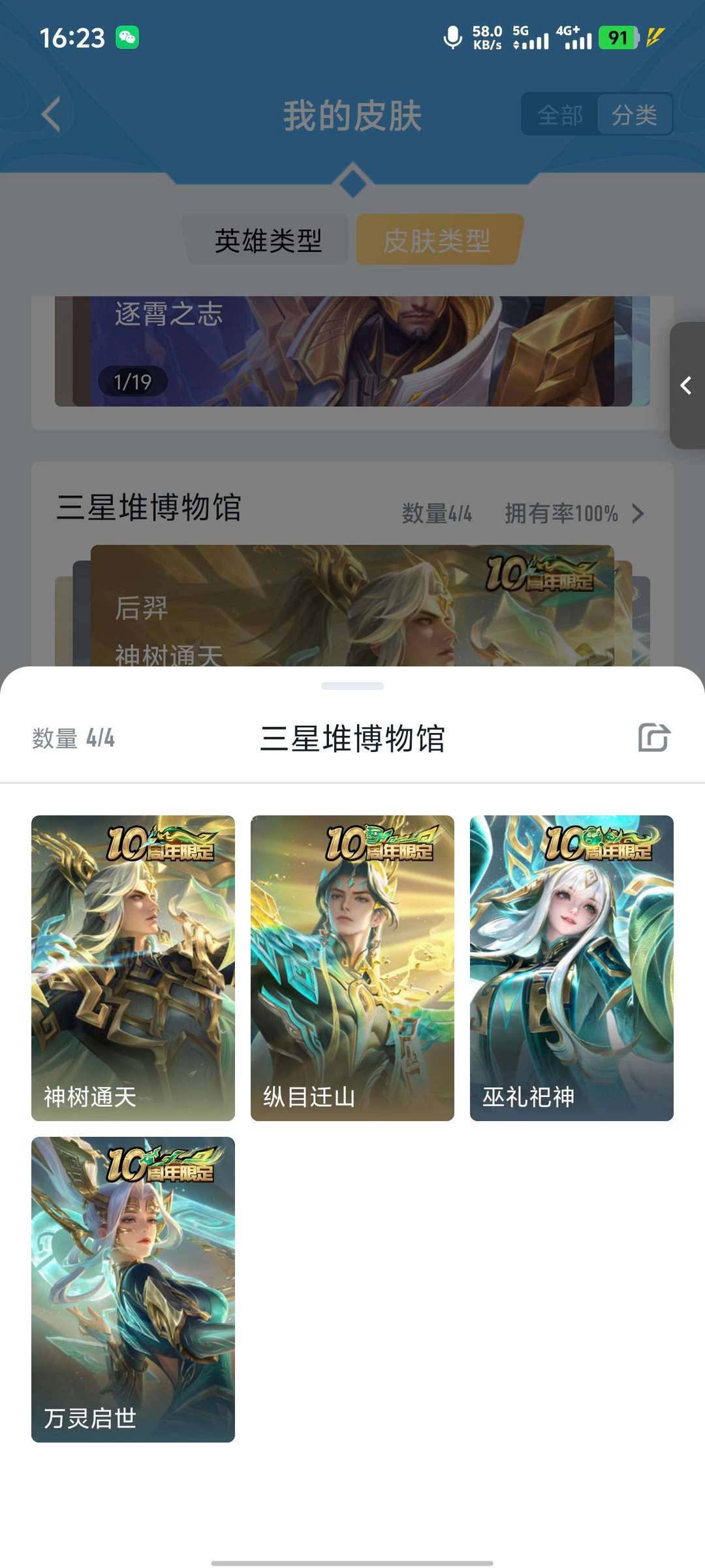 荣耀王者-375个皮肤v8-星域神启-名剑曳影十周年全皮马超全皮梅西超多传说限定满铭文放心玩