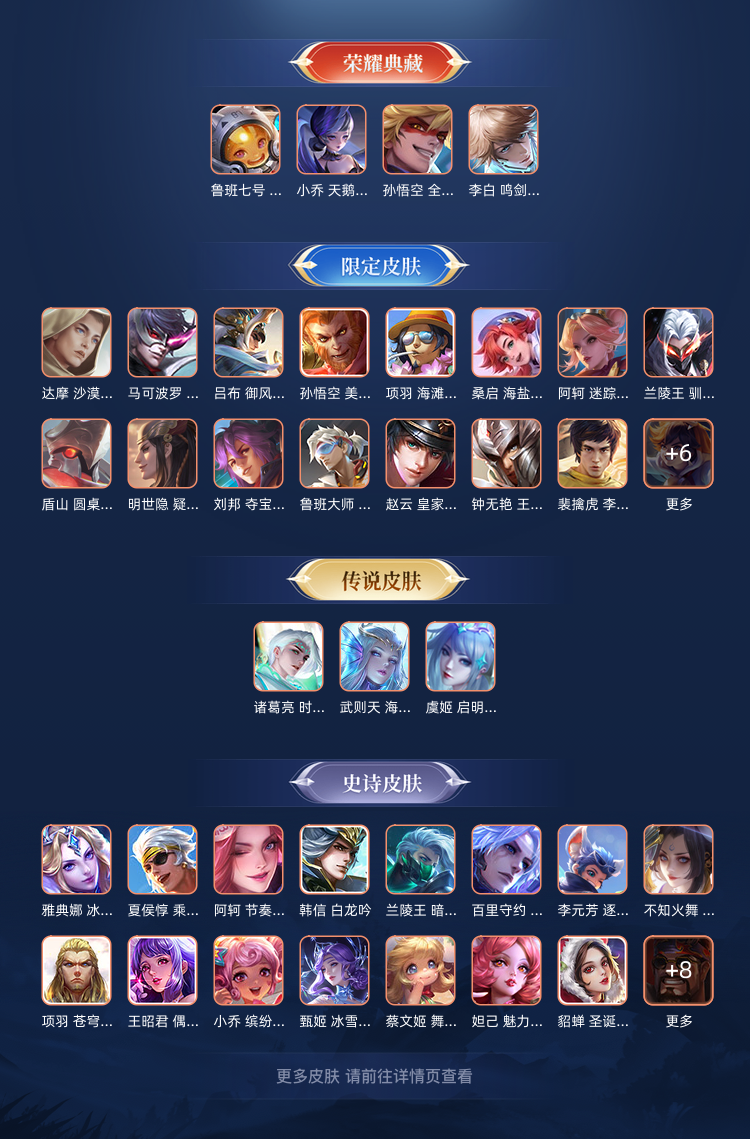 四个典藏皮肤李白,猴子,鲁班,小乔。 王者段位。铭文150级,全套都有 价格也合适放心玩
