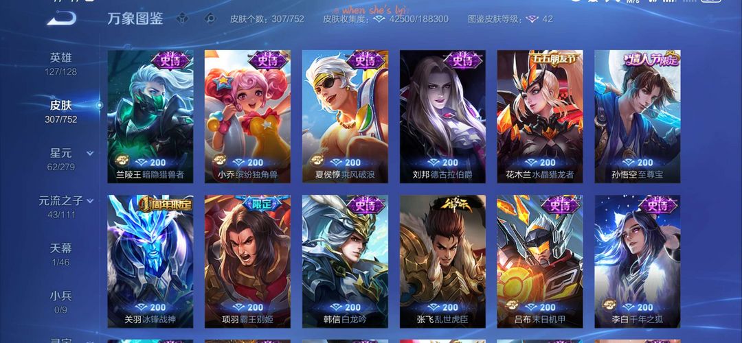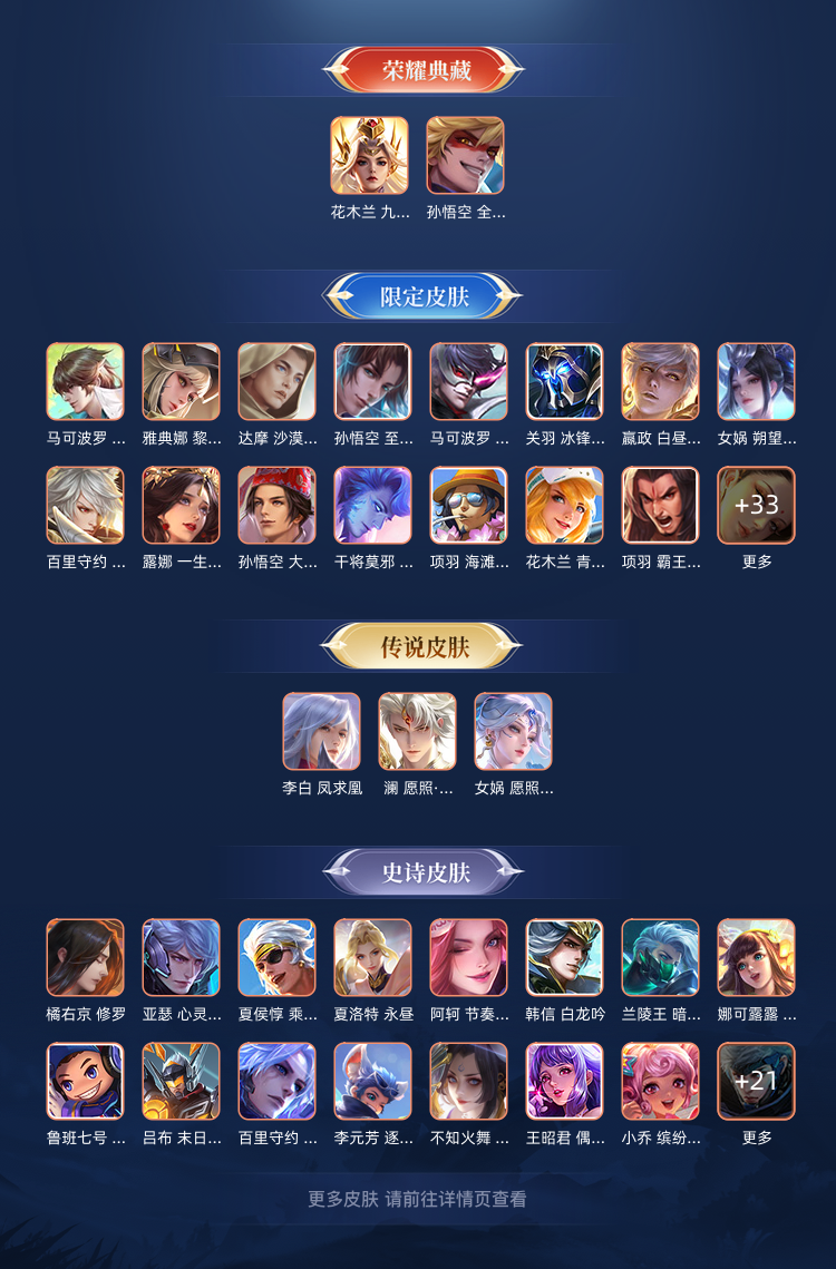 两个典藏皮肤,还有关羽的冰封战神,外加好多限定皮肤。