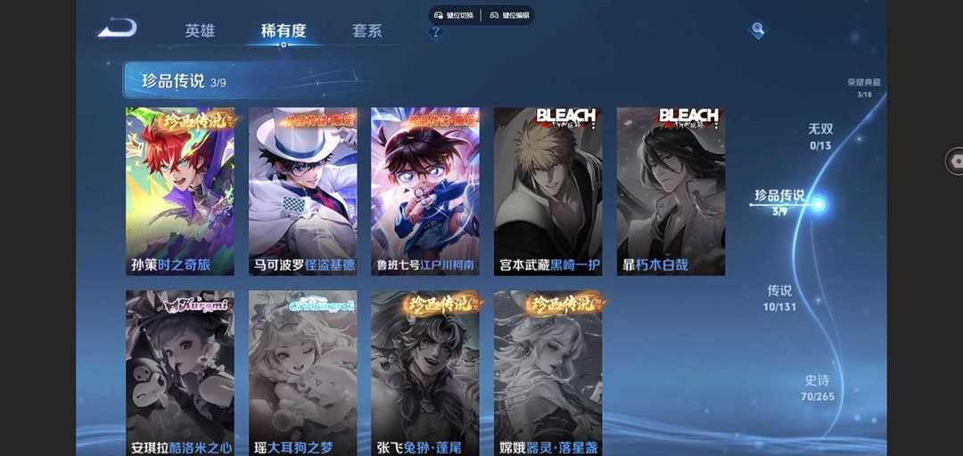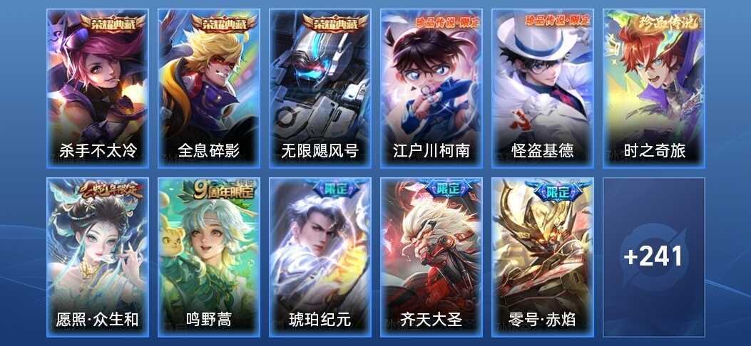 装备描述:❤️3典藏❤️3珍品❤️怪盗基德❤️江川户柯南❤️时之奇旅❤️琥珀纪元❤️齐天大圣❤️全息碎影❤️