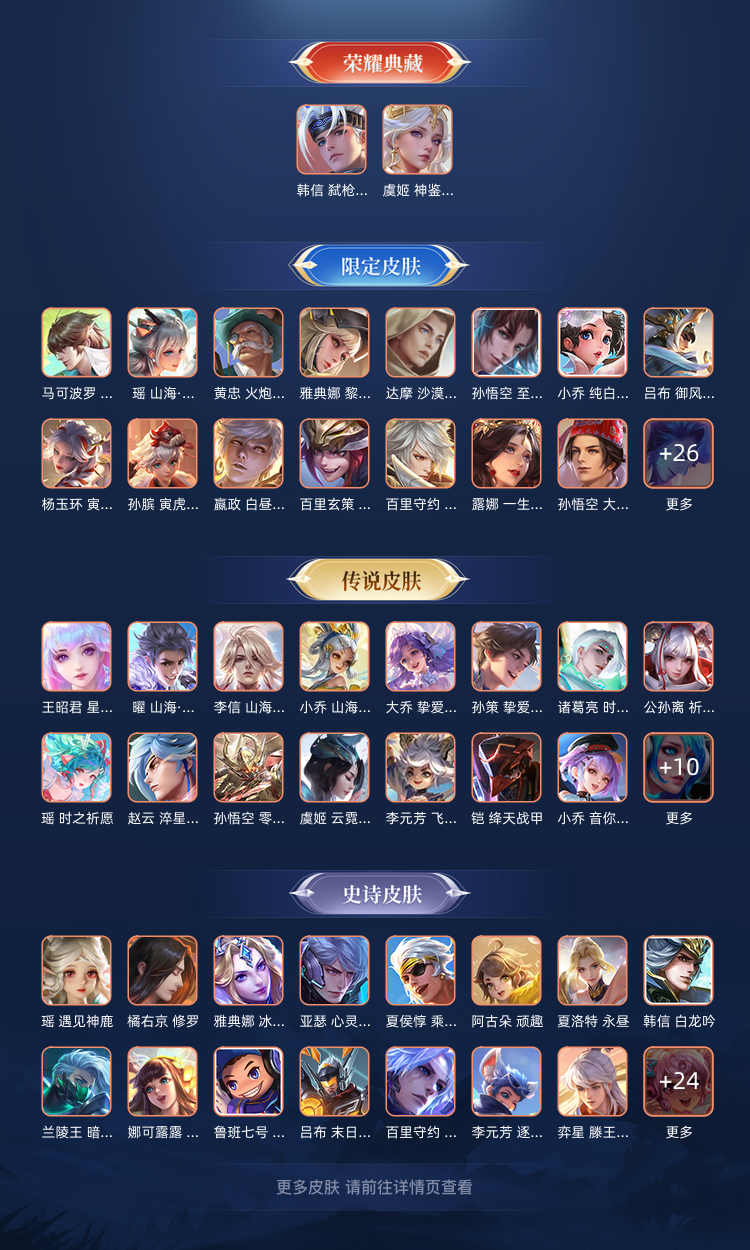 小乔,瑶,妲己无双,嫦娥,马克,鲁班,瑶珍品,朵莉亚,海诺,小乔,诸葛亮,至尊宝520,等等看看吧