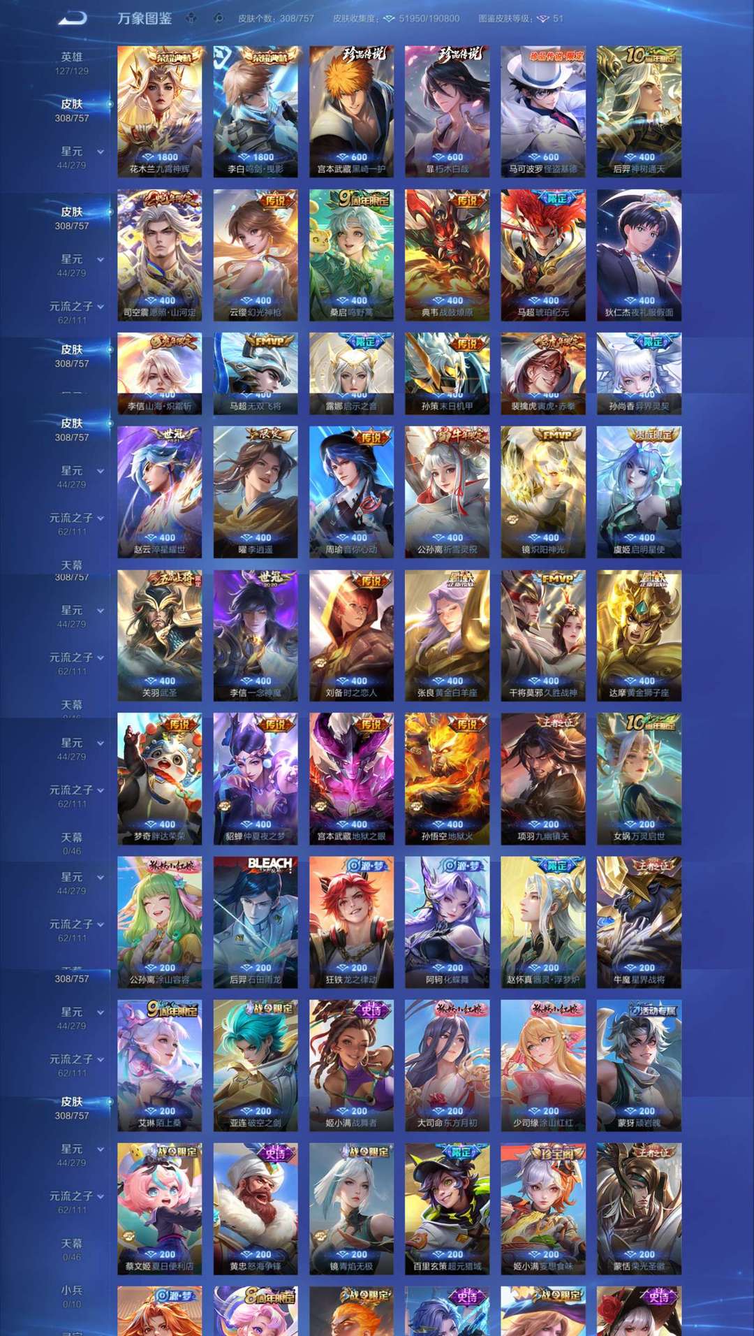 鸣剑曳影 九霄神辉 镜全皮肤 宫本黑崎一护 暃朽木白哉 马可波罗怪盗基德 李信全皮肤