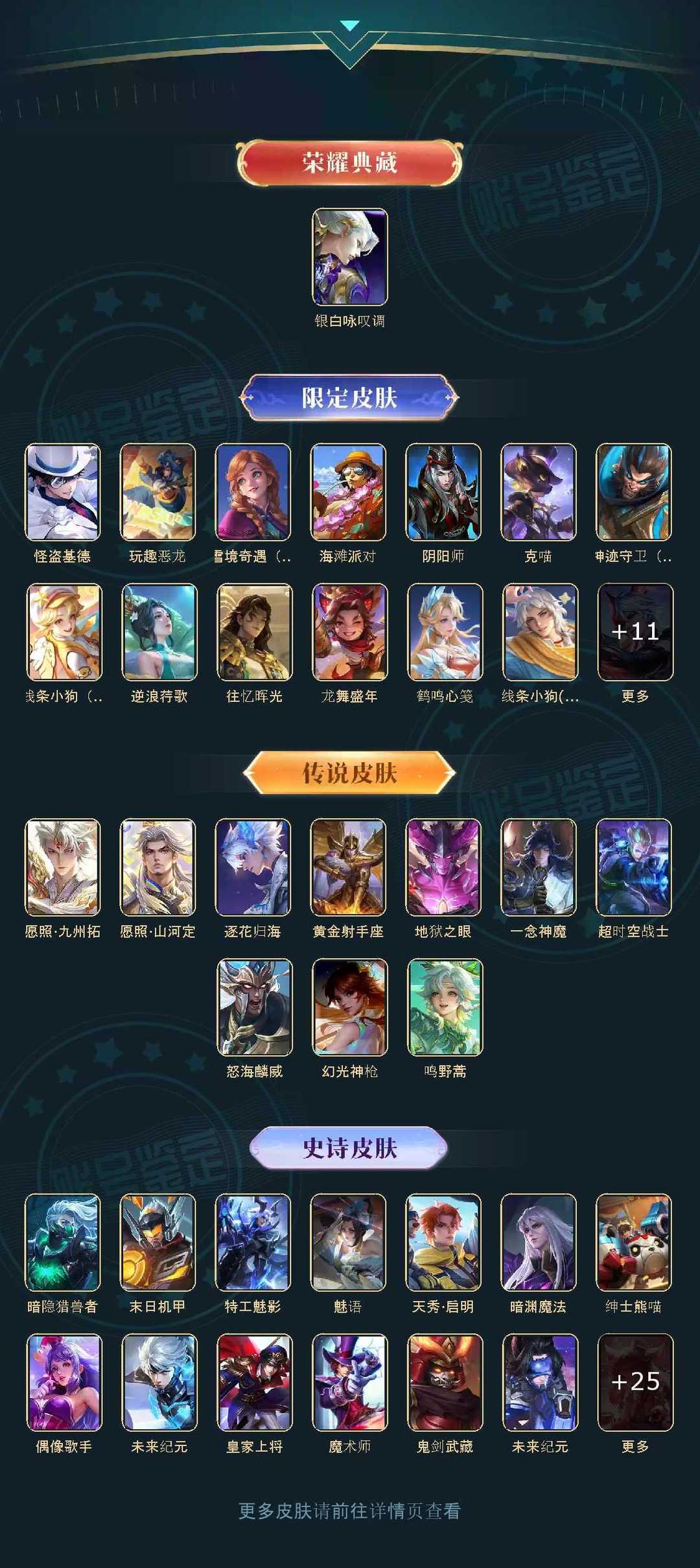 装备描述:位永恒钻石,英雄数量123,典藏皮肤数1,皮肤数量113,愿照·九州拓/逐花归海/怪盗基德/银白咏叹调/愿照·山河定/愿照·九州拓/逐花归海/怪盗基德/银白咏叹调/愿照·山河定