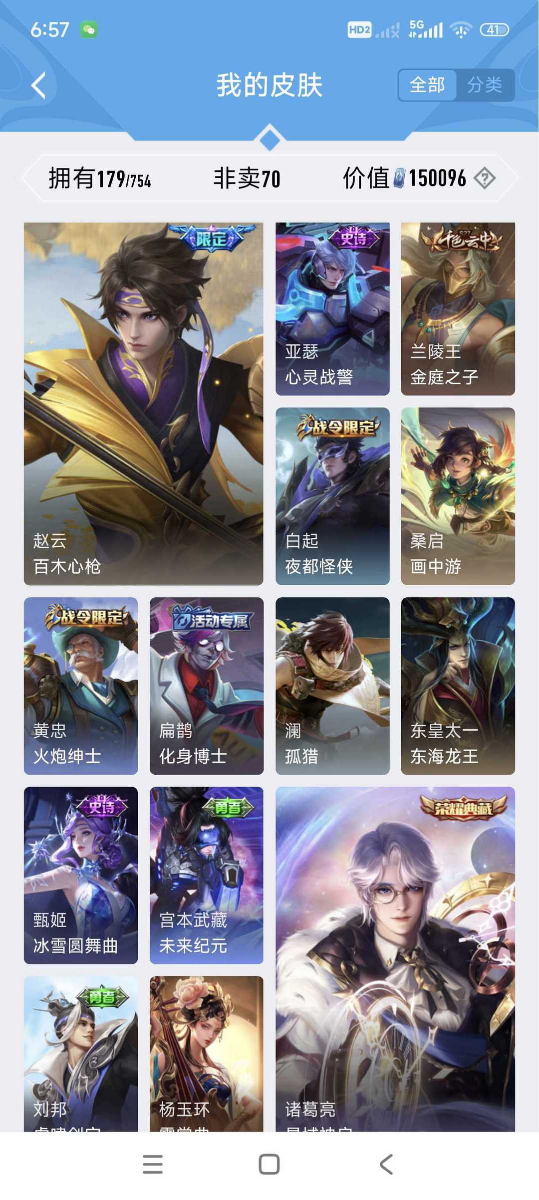 限制: 租号1次及以上 | 撤单率<45%才可租用此帐号装备描述:挂机-逃跑-送人头-消极比赛等导致扣分永久拉黑 ②不要挂机 谢谢 谢谢 ③ 到最后一局打完请自觉下线 ,一免后的租客挤掉造成逃跑扣分 ④ 喜欢的老板请收藏方便后面继续租不迷路 ,体验不错的话给个五星好评哦 杀手不太冷,全息碎影,武则天,此号各种的限定皮肤传说皮肤,主流刺客的限定皮肤,白龙吟,凤求凰,玄策的还有。赵云引擎之心,花木兰五五开黑节,等