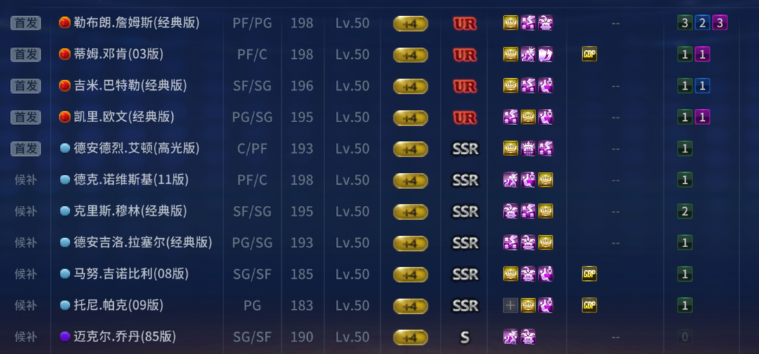 装备描述:玫瑰花园最强皇帝【UR詹姆斯经典版】【UR欧文】【UR邓肯】【UR巴特勒】带队,强到没朋友,漂移飞起来