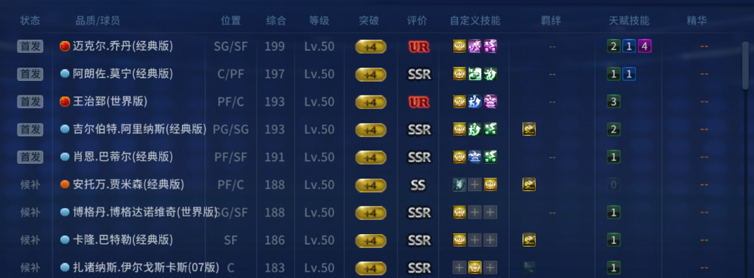 玫瑰❤️UR乔丹❤️UR王治郅SSR阿里纳斯SSR莫宁SSR巴蒂尔SSR博格丹SSR巴特勒 技能齐全