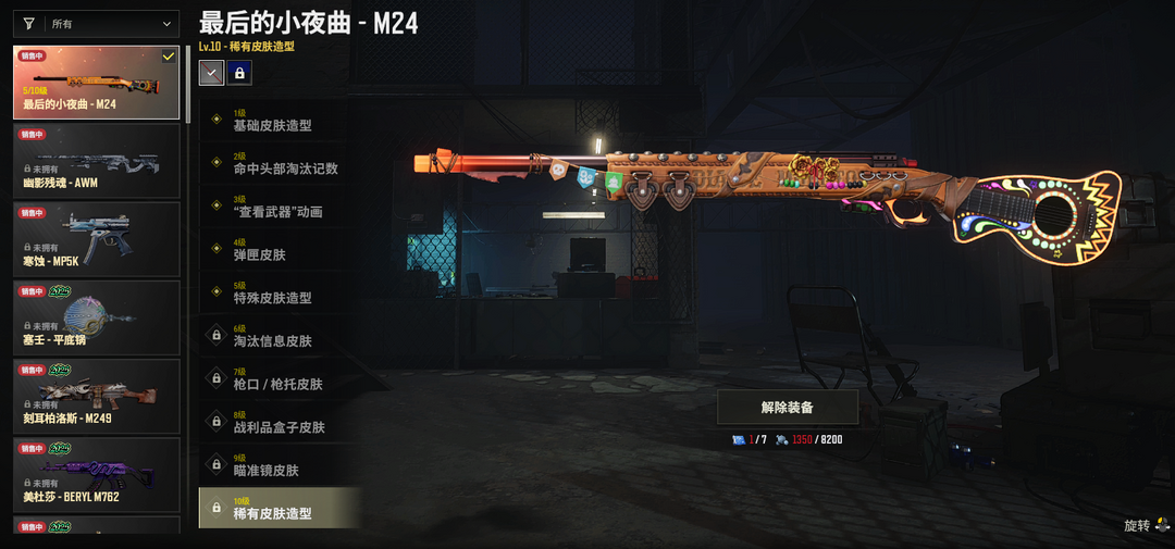 ⑤级小夜曲M24✅黄道猎手M4✅竞速之道AKM✅幸运骑士SKS✅拼图mini✅完美角度98K✅幸运骑