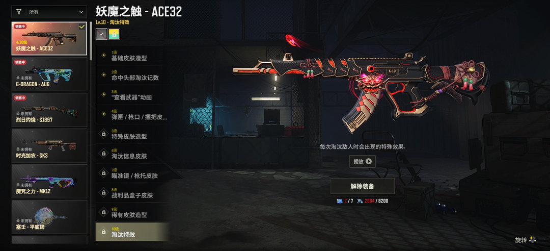 ④级妖魔之触ACE✅暗影缠身AKM✅湮灭M762✅标准猎手AKM✅湮灭M24✅铃儿响叮当98K✅鲜花