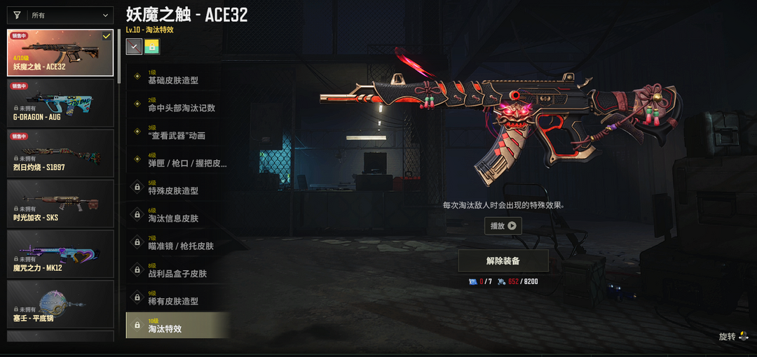 ④级妖魔之触ACE✅暗影缠身AKM✅湮灭M762✅幸运骑士SKS✅六进制mini✅王牌登场SLR✅铃