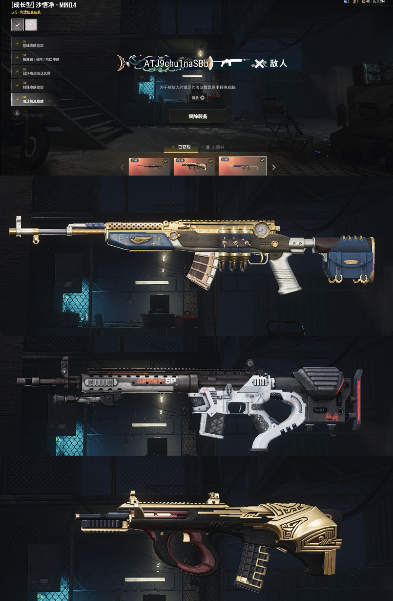 装备描述:炫酷女团大厅【四成长型✌五级沙悟净MINI✌赛搏危机MK12✌异色时光SKS✌陶洛斯AUG】大金牙✌蟒蛇花园夹克✌杂技熊套✌魔力甜心紫✌窒息的爱套✌黄铜鸟嘴套✌朱莉潜行套✌芭蕉扇✌柠檬汁M416✌魔女M762✌无信号S12K✌粉梦M24✌瓦尔哈ACE✌科技猫AUG
