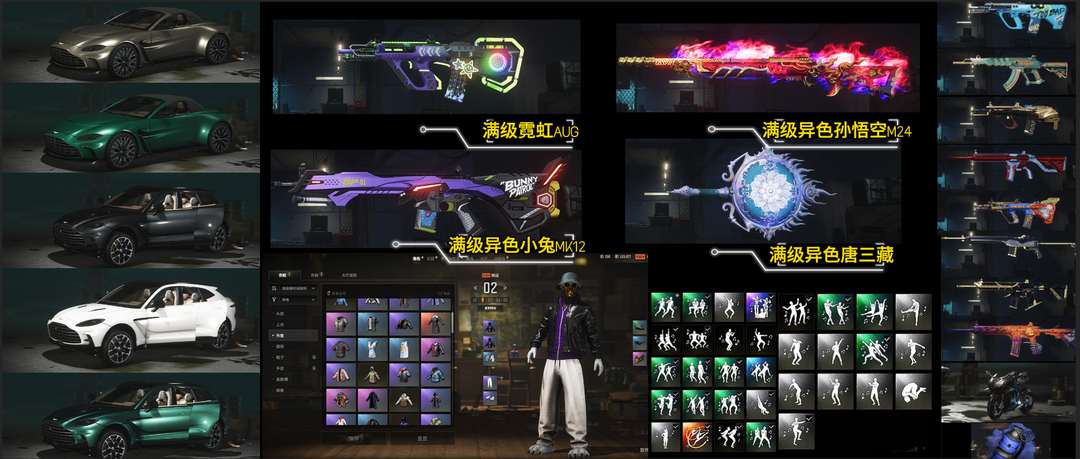 【4满12神器】马丁/杜卡迪/满级霓虹AUG/满级异色孙悟空/满级异色小兔MK12/满级异色唐三藏/