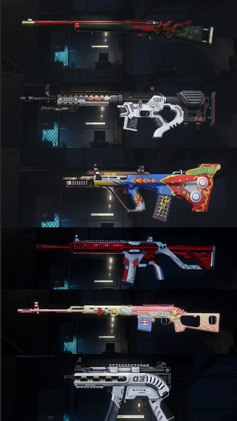 装备描述:布加迪✌瀚娜【六成长✌③孙悟空M24✌②赛搏MK12✌无信号M4✌爆裂AUG✌粉梦德拉贡✌无重力MP5K✌】老黑鬼✌橘子M762✌彩虹MK12✌毛绒卫衣套蓝+黑✌十字军SKS✌雪花K2