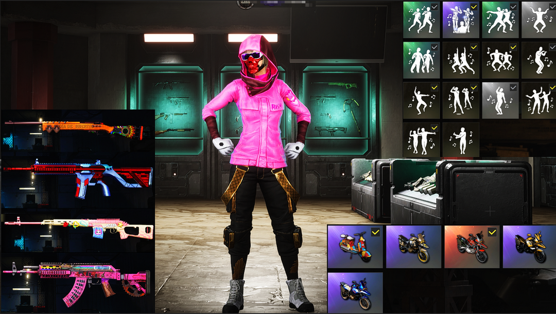 装备描述:棒球夹克【三成长✌4级火麒麟✌无信号M4✌粉梦德拉贡✌夜曲M24】拉风长裤+短裤✌悲喜套带背包✌阿狸背包✌滑雪镜✌滑雪帽✌无慈悲K2✌渔夫帽✌弥诺陶洛斯✌MINI14