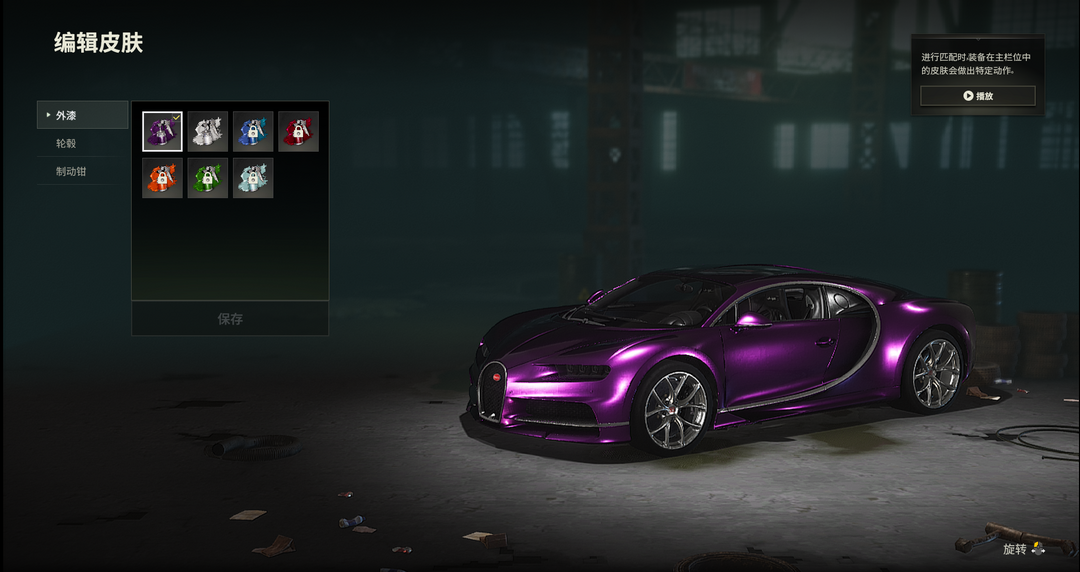 装备描述:布加迪双拼渐变蓝绿+炫酷紫跑车兰博基尼URUS无信号M4彩虹M24弹珠AUG杜卡迪黑武士金面发光手臂