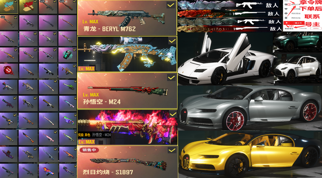 布加迪威龙兰博基尼马丁✅⑩金龙异色青龙M762⑩M24异色孙悟空烈日东南亚瀚娜战神悲喜柏林尼尔可排位