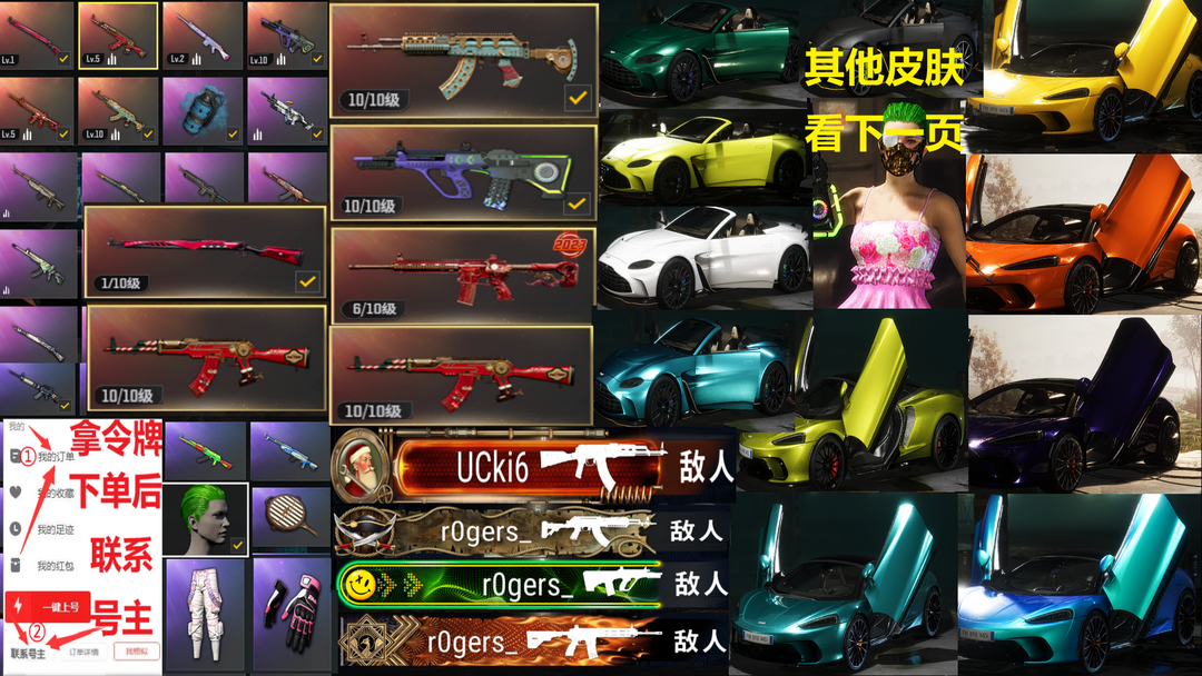 2000皮20辆跑车✅⑩762⑩AUG霓虹满级AK⑥M4朱雀午夜玩偶炮小丑阿斯顿马丁迈凯伦柏林可排位