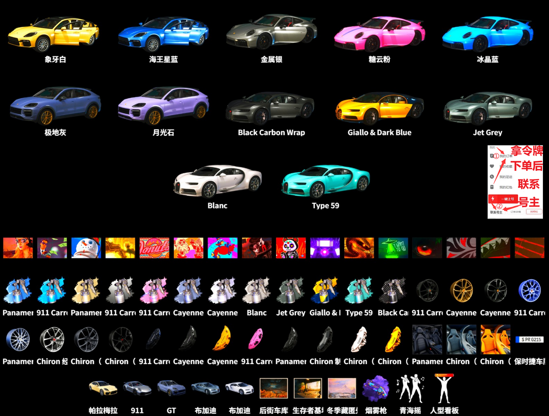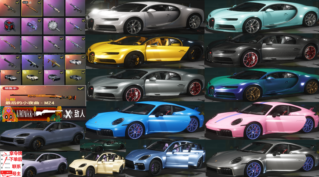 全满跑车布加迪威龙保时捷911帕拉梅拉✅⑩M24最后的小夜曲小丑女战神滑雪金面具马尾柏林悲喜可排位
