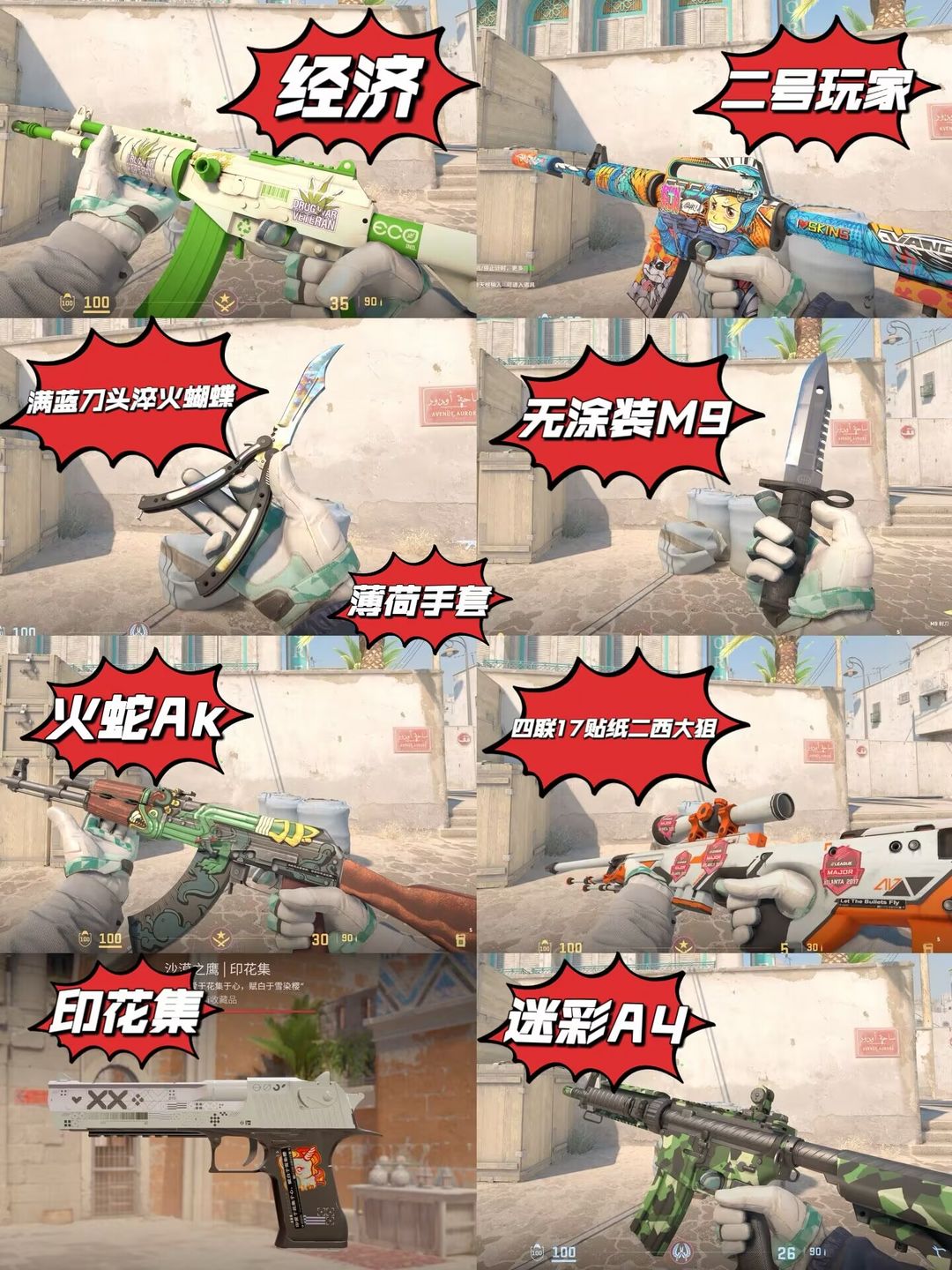完美1500分薄荷❤️满蓝刀头淬火蝴蝶+无涂装M9❤️火蛇Ak❤️二号玩家A1❤️二西大狙黑魅A4