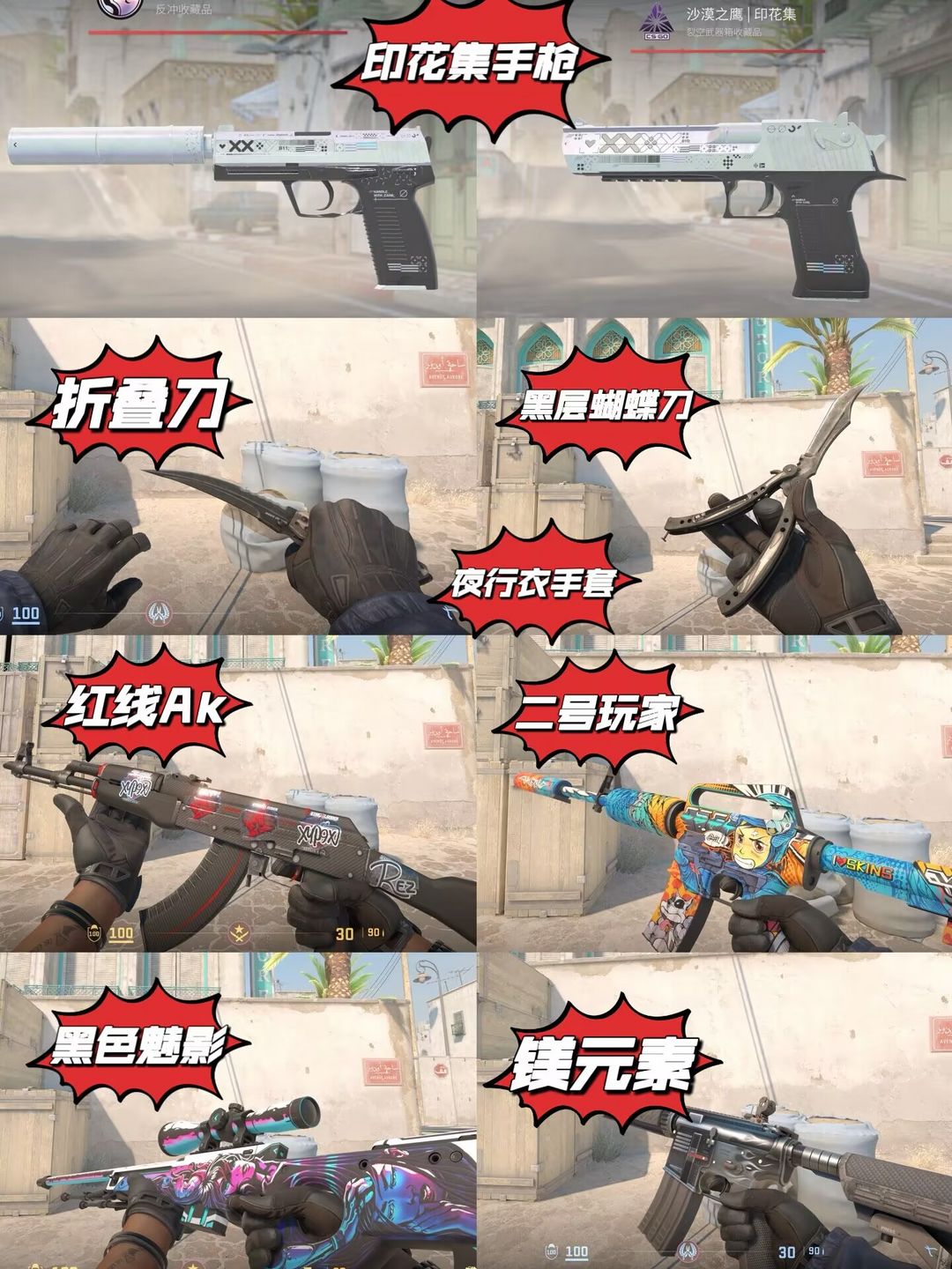 完美S❤无损夜行衣❤双黑层折叠刀+蝴蝶刀❤红线AK❤二号玩家A1❤反冲精英A4❤黑魅狙印花集手枪