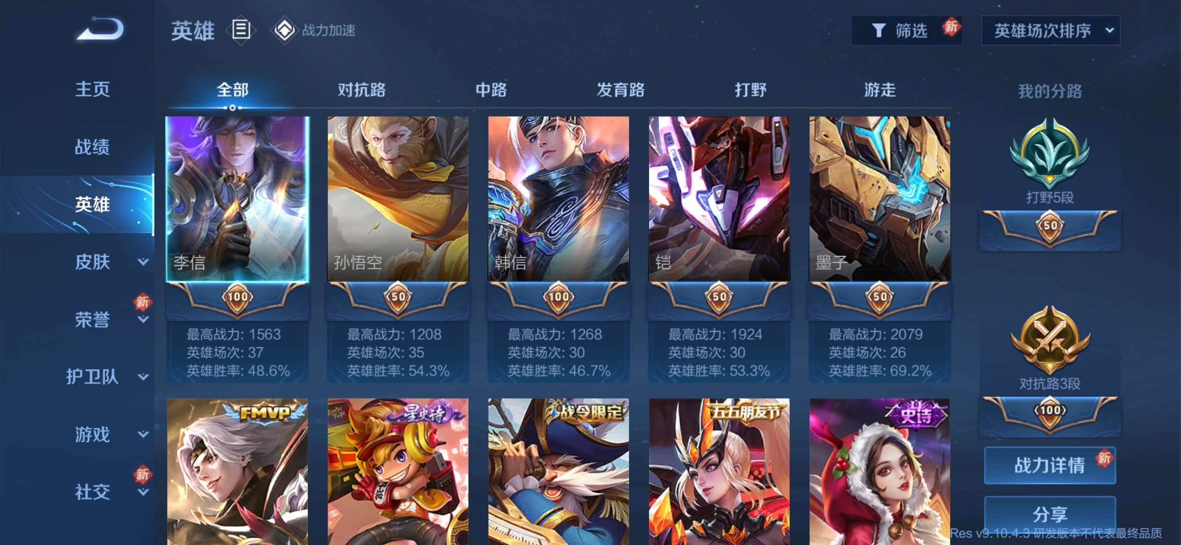 装备描述:v7 全英雄武则天嬴政 10传说 韩信典藏详情看图