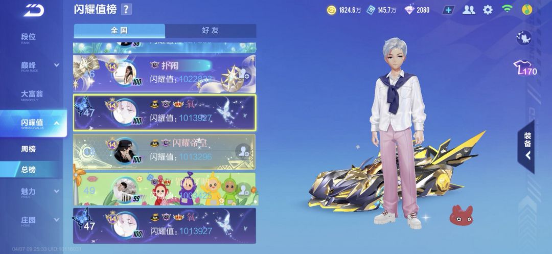 V14❤️全机甲全A车全皮肤全神宠❤️百万闪耀值❤️图鉴6.4w