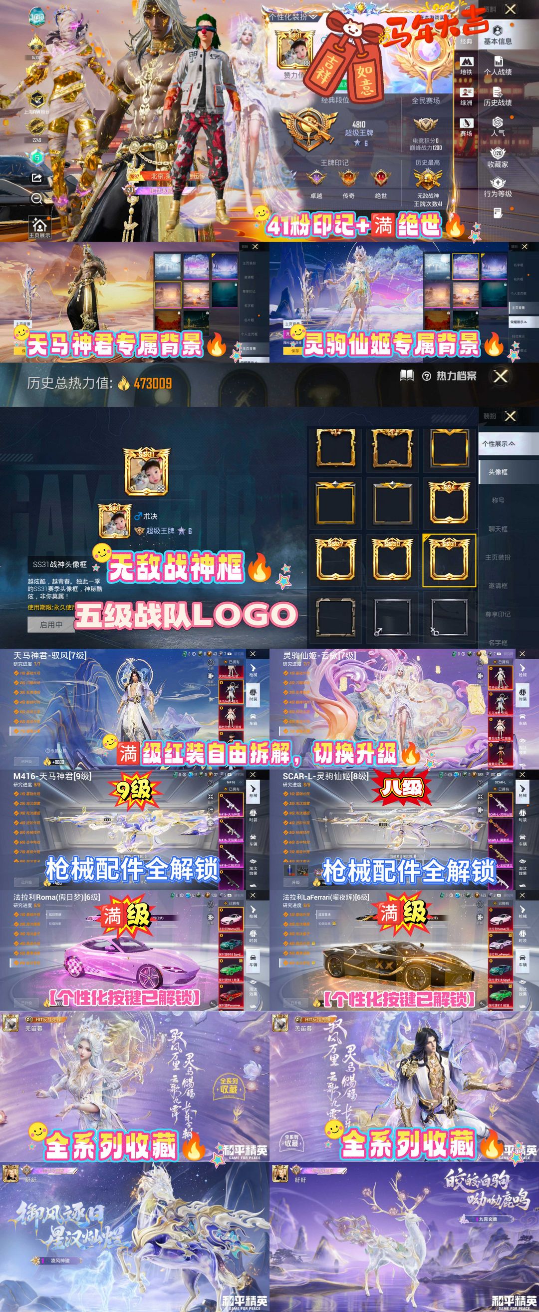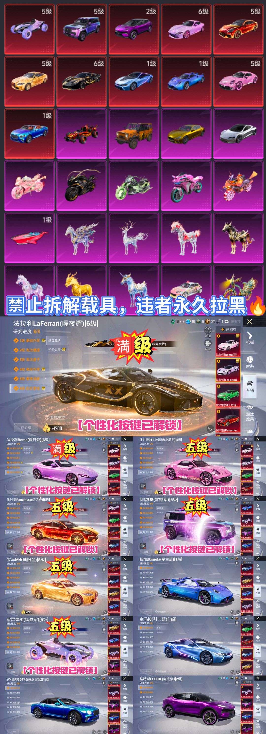 极品ID朮决 满级驭风云歌全系 双满级法拉利 满级⑯套红 巡查衣47万热150粉30车⑪升级车