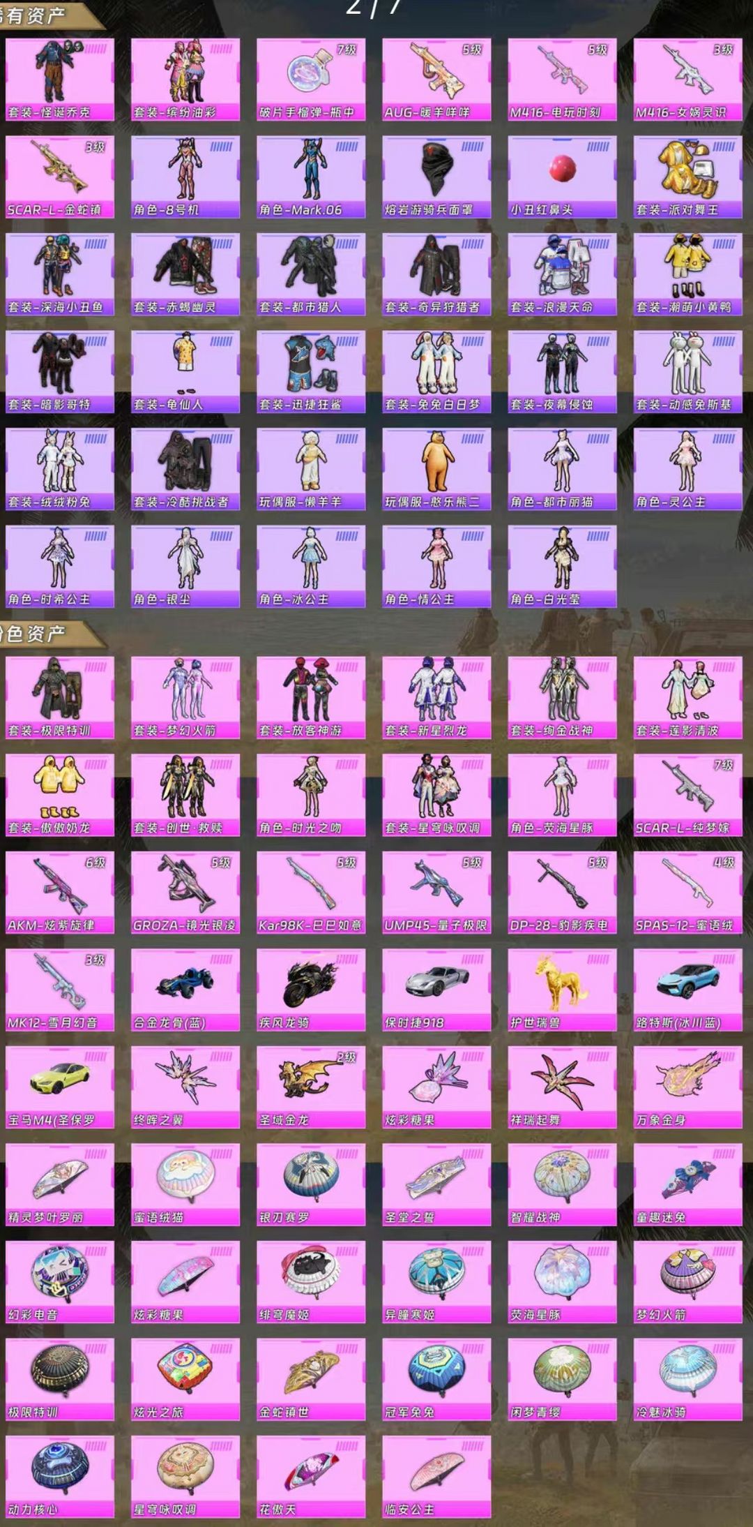 包天便宜 素材号 男神3件套+小丑 红鼻子 6载具 13套粉装 13升级枪 怪诞乔克 猪妹 金鞋