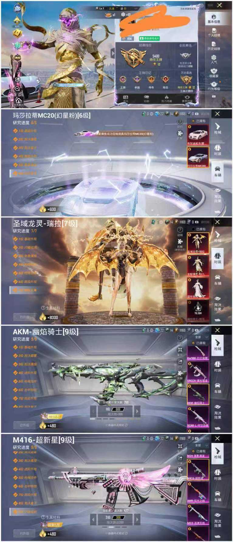 满级沙丘之主图卡盟❤满级超新星M4❤满级幽焰骑士AKM❤满级幻星粉玛莎❤️瑞拉龙女金麒麟素材全