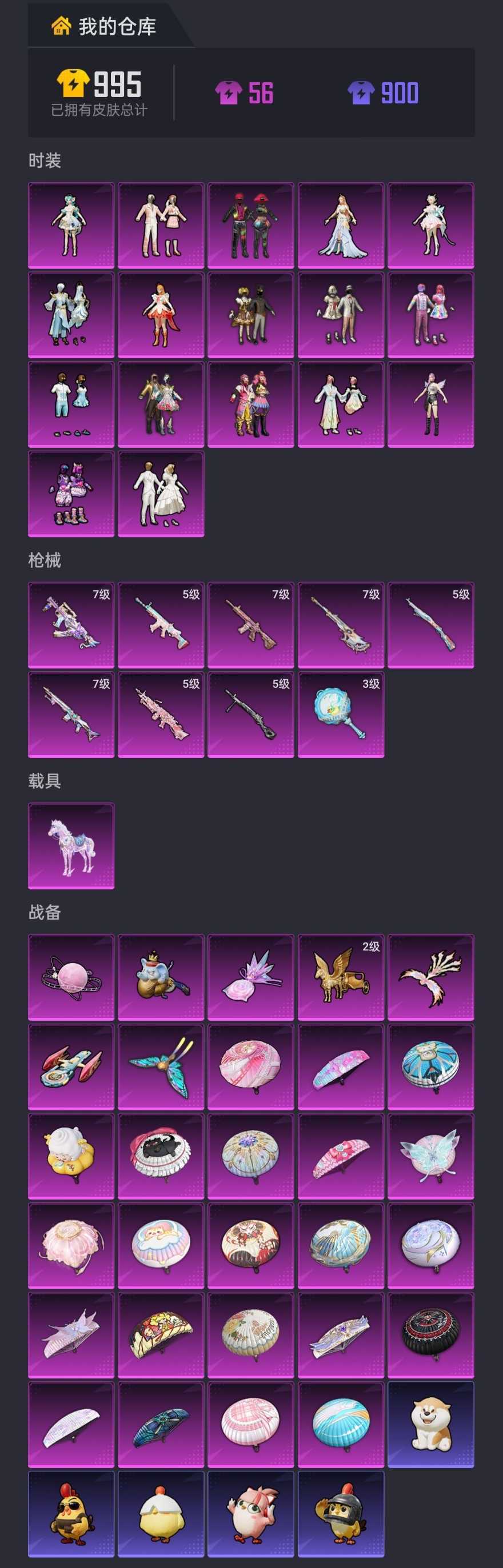 限制: 租号5次及以上 | 撤单率<49%才可租用此帐号装备描述:该号女号 套装185件,粉套17件 枪皮243个,特效枪9个 载具皮肤1个 装备362个,三级头49个,三级包55个 降落伞84件,滑翔尾迹19个,动作94个 祝您游戏愉快~请勿乱撤单请勿乱用币喔~会秒顶永久拉黑~谢谢宝宝~
