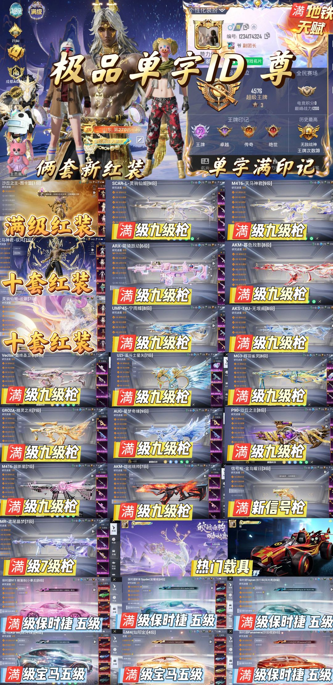 单字ID 尊 满级红驭风/云歌满绝印记/无限阁/星梦奇缘/地铁满天赋/保时捷全套/宝马M4