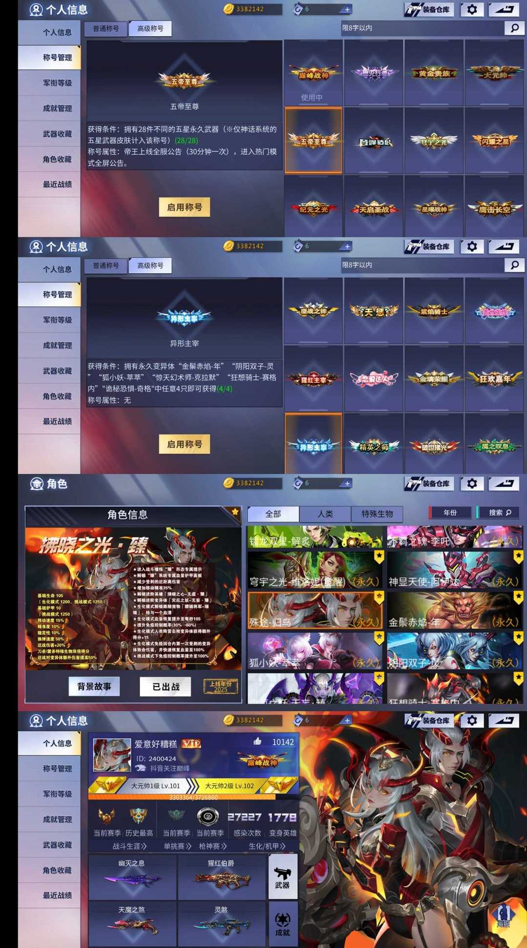 装备描述:❄️二区顶配第三 ✨强力传世主武器 ✨大元帅100级Lv. ✨爆破轮椅枪伯爵 ❤️五星六源!盖世英雄 ❤️到时不下 顶号 恶意撒单永久拉黑 ❤️道具血清弹匣全开游戏愉快!
