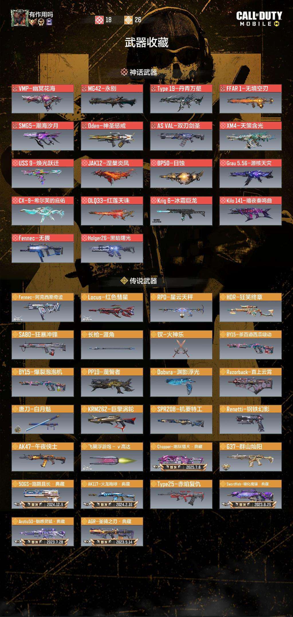 装备描述:7满神钻皮永别 丹青万壑 无镜空刃 潮海汐月 神圣惩戒 双刃剑圣 幽冥花海 钻皮冰龙 钻皮日蚀 炎凤 希尔芙 暗夜 无畏 红莲 源核天灾 黑暗曙光 焕光跃迁 天策含光 机要特工 巨擘涡轮 唐刀 涯角 红色彗星