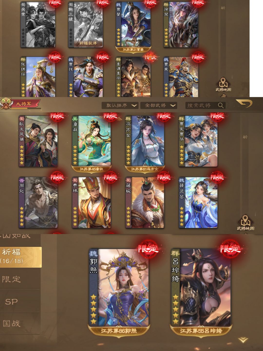 装备描述:出新武将会持续更新(各位老板大家好呀,麻烦大家请不要恶意挂机逃跑 骂人 元宝麻烦大家尽量不要动 如果说缺换将卡任何道具什么的可以留言反馈 我这边多买一些 祝大家玩得开心~)这号是个老号了 一共在上面花了10w+了,出新武将会持续更新。限定皮肤几乎都是全的 现版本强力武将全、大祈福 全小祈福 例举一些排位强力武将❤南华老仙❤谋诸葛亮 族钟琰❤祢衡❤魔貂蝉 司马懿❤四大天王 (谋董卓谋华雄sp曹操sp刘备)❤费祎 ❤️蒋琬❤️族钟琰❤曹宪曹华❤徐荣❤薛灵芸❤郭照❤谋公孙瓒❤谋文丑❤谋庞统❤谋袁术❤谋关羽❤谋张秀 各模式畅玩